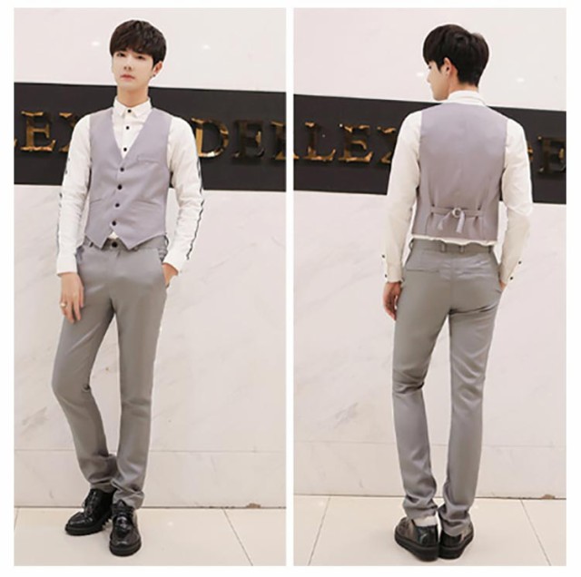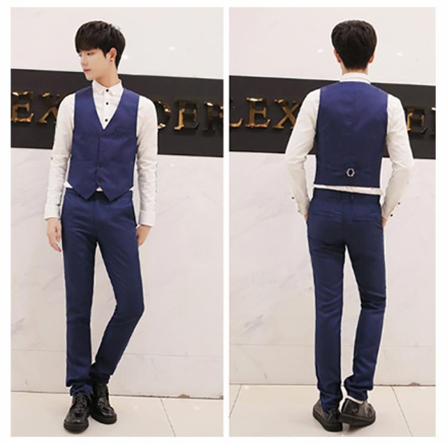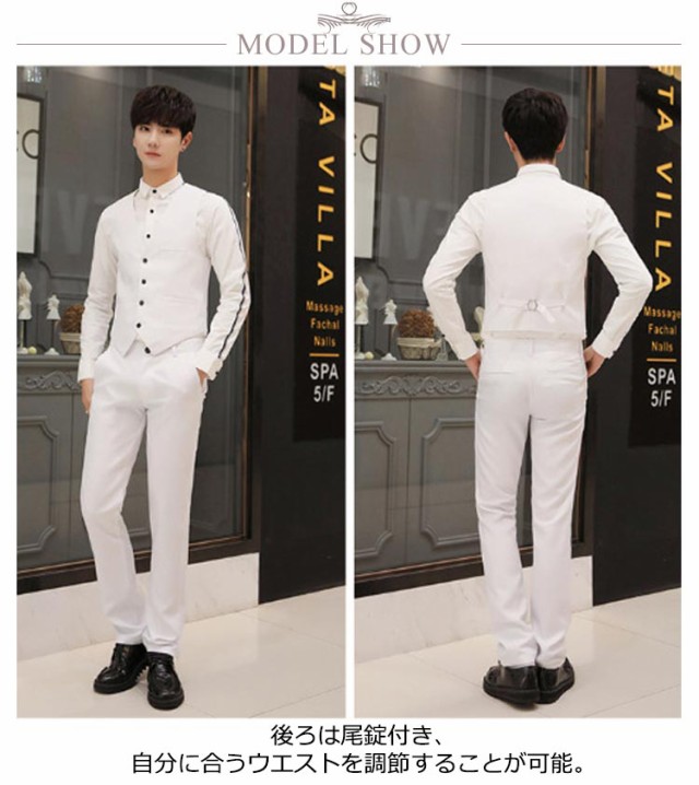 | 8COLORS×7SIZE カジュアルにもフォーマルにも適したスーツベスト 後ろは尾錠付き、自分に合うウエストを調節することが可能 | |