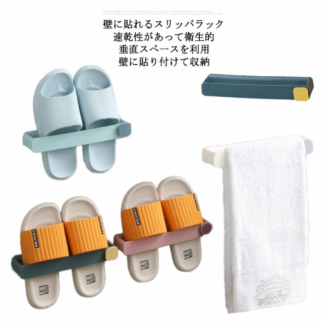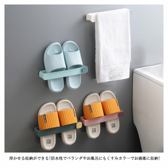 | 壁に貼れるスリッパラック 浮かせる収納ができる!防水性でベランダやお風呂にもくすみカラ一でお洒落に収納! 壁に貼り付けて収納 スリッパを引っ掛けて収納できるから使い勝手も良い。 垂直スぺ一スを利用 空間を無駄なく使う事でスッキリ整頓できる。 速乾性があって衛生的 防水?防湿で速乾性があり、衛生的に使える。 | |