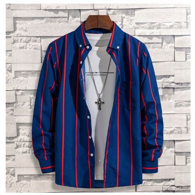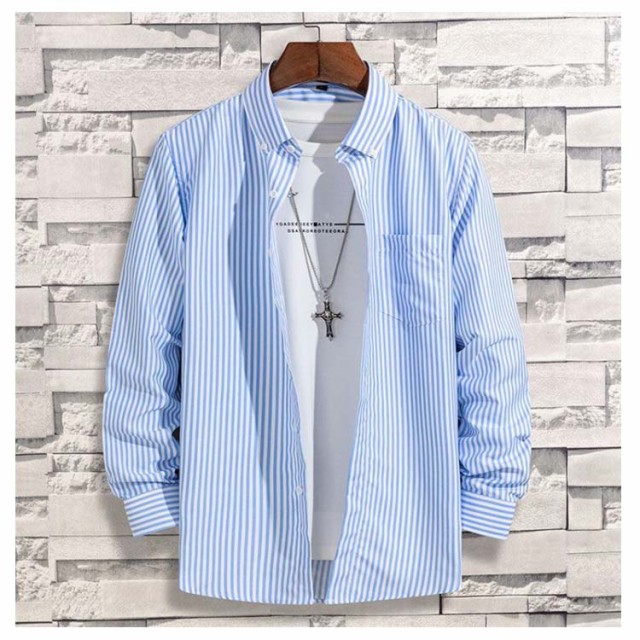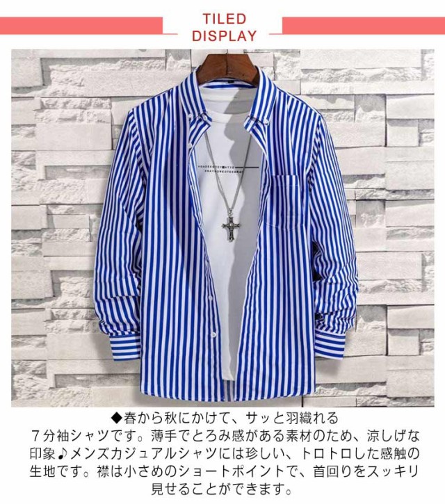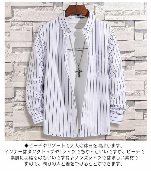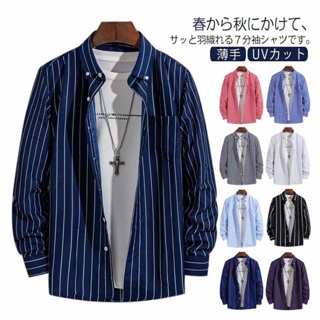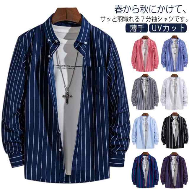 春 ボーダー柄 夏服 メンズ ストラップシャツ カジュアルシャツ UVカット 長袖 送料無料 薄手 シンプル ワイシャツ 送料無料 秋服 ゆったり 大きいサイズ 柔らかい シャツ おしゃれ ドロップ ショルダー 薄手 ブラウス フィット 耐摩耗