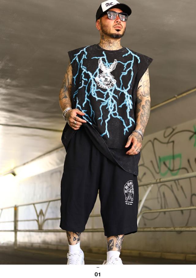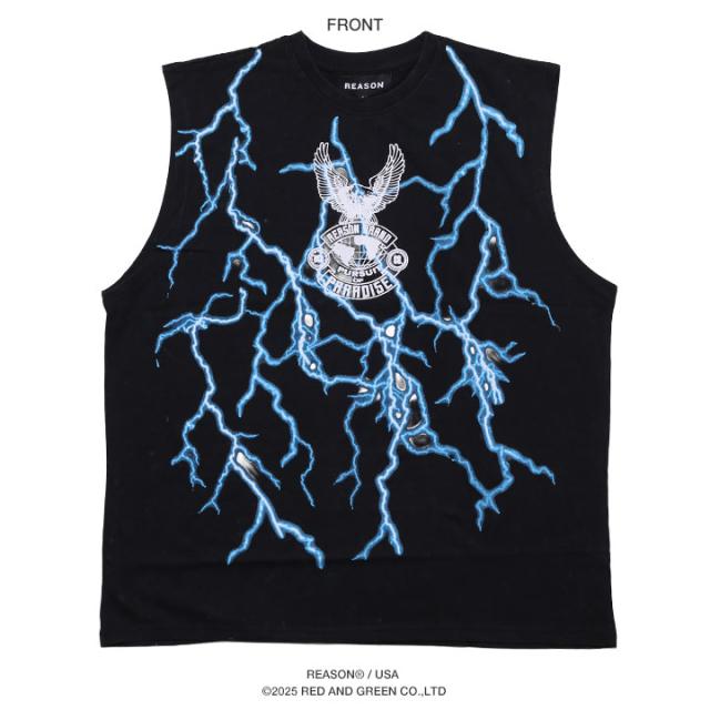 REASON Tシャツ ノースリーブ 袖なし メンズ 黒 大きいサイズ リーズン 派手 総柄 雷 イーグル 黒シブ 渋黒 ピグメント タンクトップ オーバーサイズ ビッグシルエット b系 ヒップホップ ファッション ストリート系 ハイ ブランド 服 2025春夏 RSP409