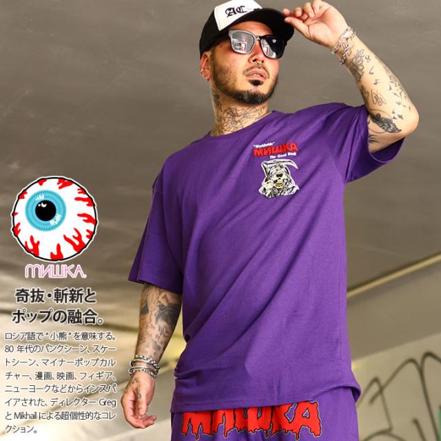 MISHKA Tシャツ 半袖 メンズ 春夏用 紫 大きいサイズ ミシカ おしゃれ かっこいい 派手 総柄 CYCO SIMON サイコサイモン スカル ドクロ オーバーサイズ ビッグシルエット b系 ヒップホップ ファッション ロック バンド ストリート系 ハイ ブランド 服 2025春夏 新作 MSK-160