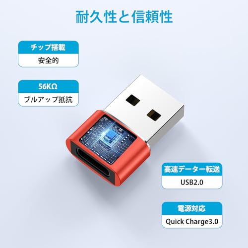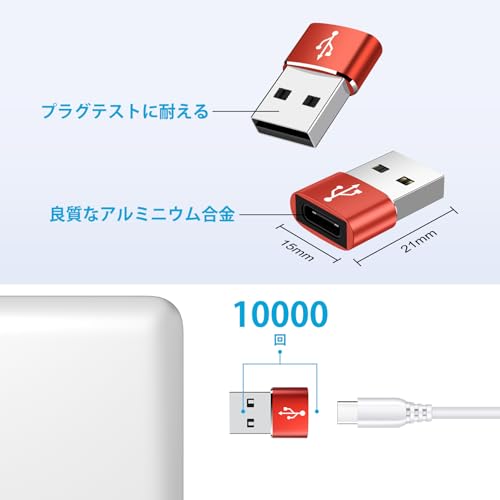USB変換アダプター Type C (メス) to USB 2.0 (オス) 急速充電 変換 USB タイプc 変換アダプター OTG対応 480Mbps 高速データ転送 iPhone15 / Windows / MacBook / iPad Pro / Xperia / Galaxy S23 / S20など対応 (赤)