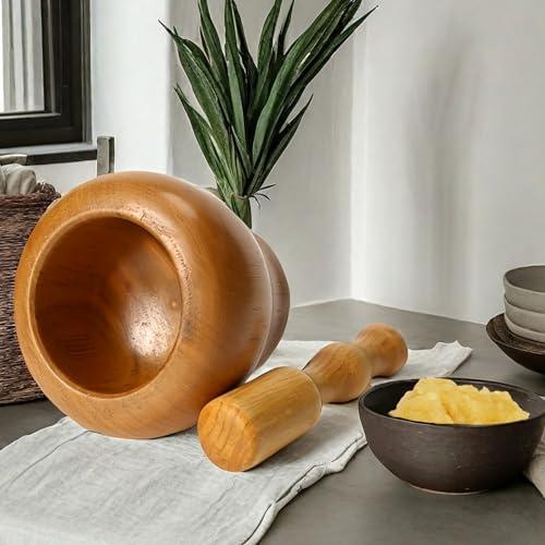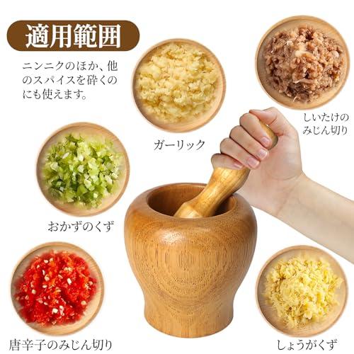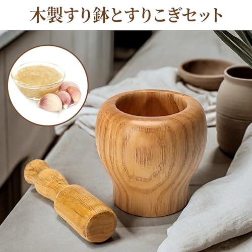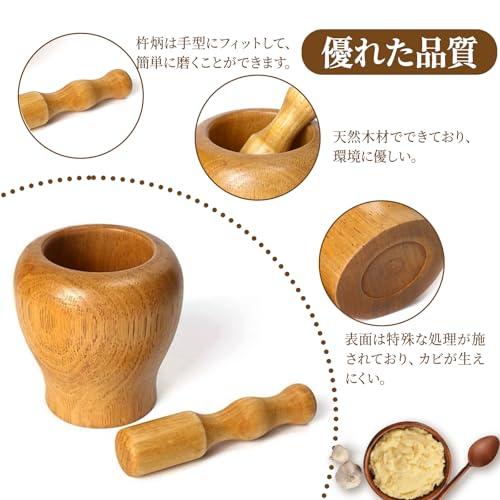 木製 すり鉢 すりこぎセット 2点セット 臼 杵付き にんにく 搗き器 大容量 調理器具 研削ボウル スパイスすり鉢 生姜 スパイス ナッツフルーツ コーヒー豆 ガーリックなど 研削ボウル / にんにく / 漢方薬 / 雑穀 キッチン用品 多用途 家庭 / 料理 / 研磨用 木色 10×10cm