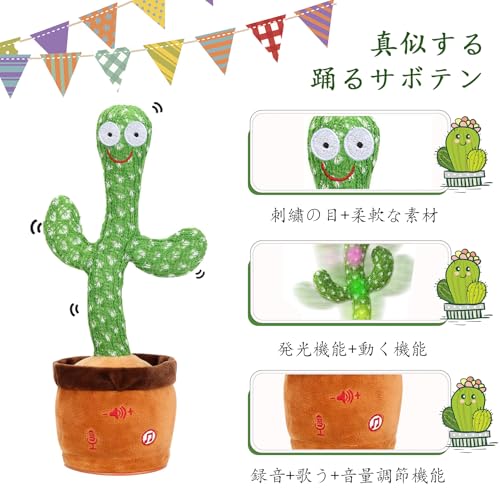 【サボテン おもちゃ】喋るサボテンは録音、リピート、発光、ダンス、歌の機能が含まれています。さらに、それはあなたが言ったことの繰り返しを記録します。もちろん、これらの音はあなたのオリジナルの音ではありませんが、処理された音はもっと面白いです。