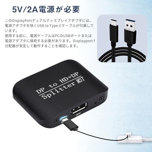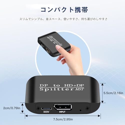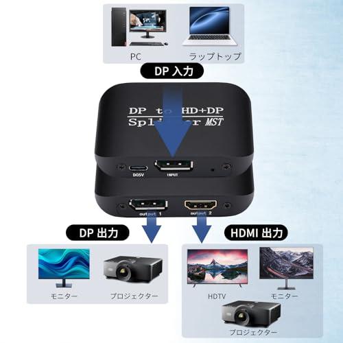 DisplayPort to HDMI + Displayport 分配器 MST SST 拡張 / ミラーモード DP to DP + 4K HDMI出力 DisplayPort 1.3 スプリッター デスクトップ PC ラップトップ