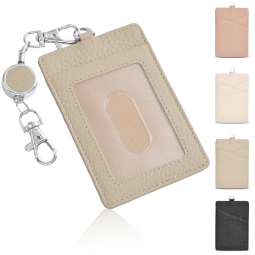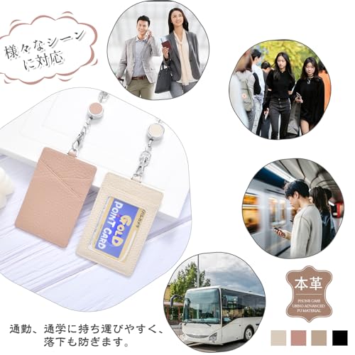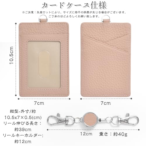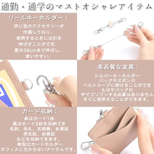 定期入れ IDカードホルダー 縦型 パスケース レディース 定期入れ リール キーホルダー付き 薄い 人気 可愛い メンズ パスケース 通勤 通学 軽量 おしゃれ 女性 レザー IDカードケース 両面用 薄型 定期入れ カード収納3枚 本革 社員証 名札ケース カードケース 男女兼用 (アプリコット)