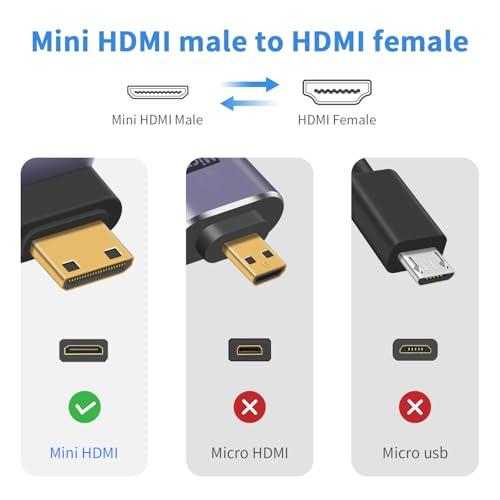 Mini HDMI(オス) to HDMI(メス) 延長金メッキコネクタ、ノートパソコン、ビデオカメラ、カメラ、Raspberry Pi 4、Go/pro、DSLR、タブレットなどのマイクロHDMIポートにHDMIケーブルを適合させることができる。