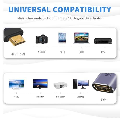 これはL型 mini HDMIオス to HDMIメスアダプタです、それがmini HDMI to HDMI端口である場合、あなたのデバイスを確認してください。hdmi ミニhdmi 2.1変換アダプタコネクタ,アルミケースと金メッキコネクタで安定した信号伝送を確保。