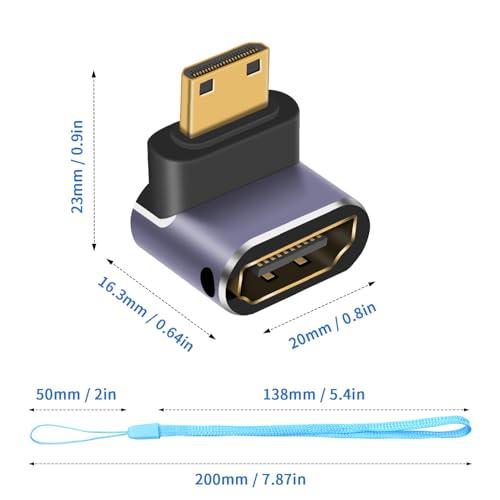 HDMIミニ HDMI延長アダプタ 8K HDMIミニ HDMI2.1変換アダプター Mini HDMI(オス) to HDMI(メス) 変換アダプタ金メッキコネクタ 8K@60Hz 4K@144Hz 2K@240Hz HDR対応 (上向き)