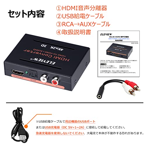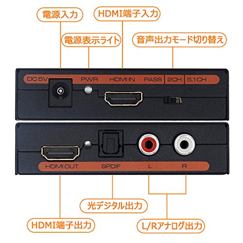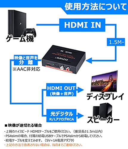 HDMI 音声分離器 4K HDCP1.4 光デジタル R / L白赤アナログ PS4slim / Nintendo Switch / Fire TV Stickなど対応 オプティカル SPDIF デジタルオーディオ分離器 電源不要 バスパワー式
