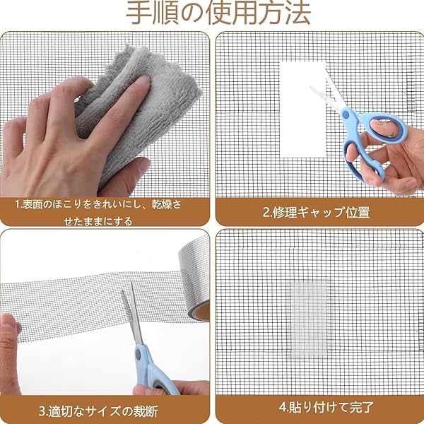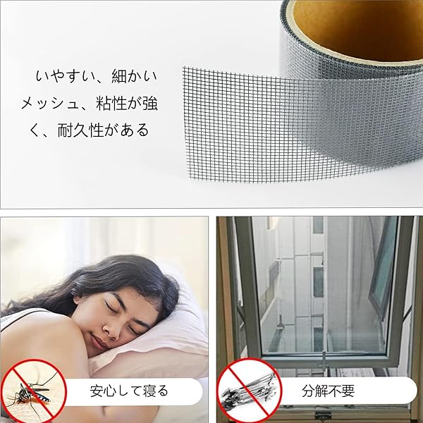 網戸 補修 テープ 網戸補修テープ 強力 網戸 補修 シール 強い粘着力 網戸 補修 枠 網戸パッチ 蚊避け 通気性が良い 両面テープ付き 粘着性が強い簡単取り付け カット自在 穴 破れ 修理 蚊帳 網戸補修 自由裁断