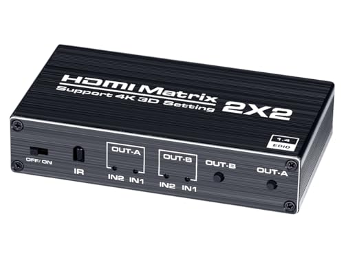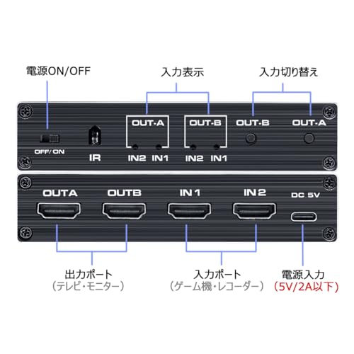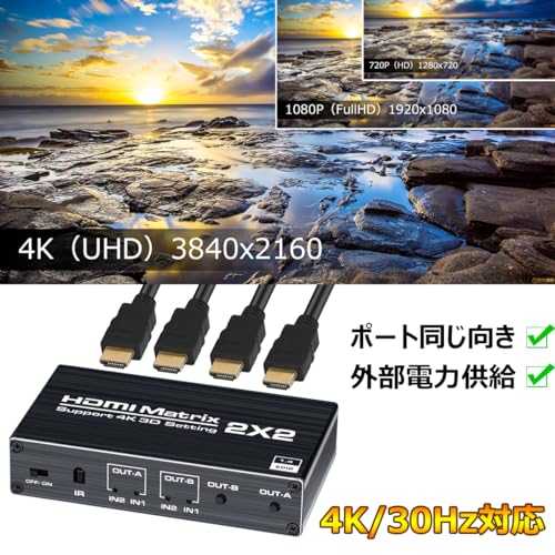 HDMI 切替器 HDMI 分配器 2入力2出力 マトリックス切り替え 4K HDCP1.4対応 セレクター スプリッター PS3 / PS4 / Nintendo Switch / ブルーレイプレーヤー等に適 手動切り替え リモコン付き ACアダプター USBセルフパワー式