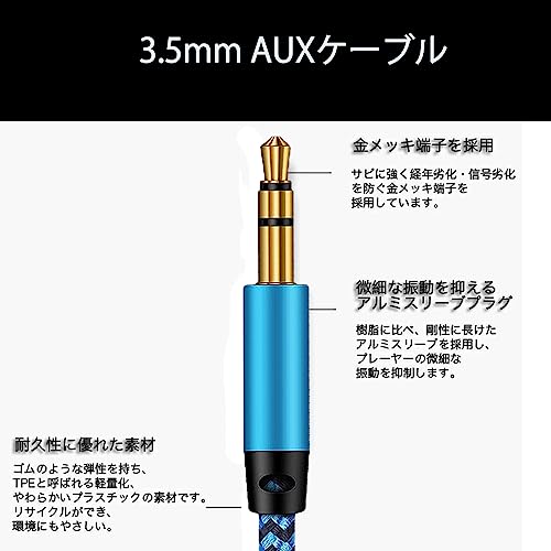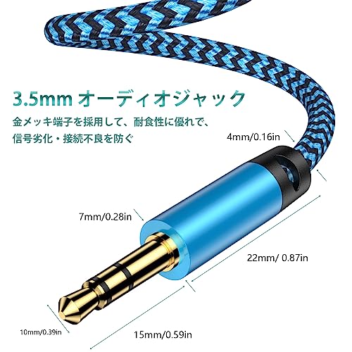3.5mm オーディオ ケーブル ステレオケーブル 3極 TRS AUXケーブル イヤホンジャック スマホ AUXケーブル ステレオミニプラグケーブル オス オス AUX コード 24K金メッキ加工 ナイロン編み Hi Fi高 音質 高耐久性 音声ケーブル ヘッドホン スピーカー 音響 ...