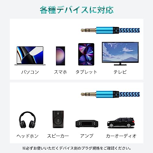 【3.5mmの3極/TRSジャグ】スリムな 3.5mm ジャックのステレオ オーディオ ケーブルにより、手軽いに3.5mm ジャックのデバイス差し込め、高音質の音楽を楽しむ&録音に生かします。購入前、手前のデバイス端子をご確認ください。