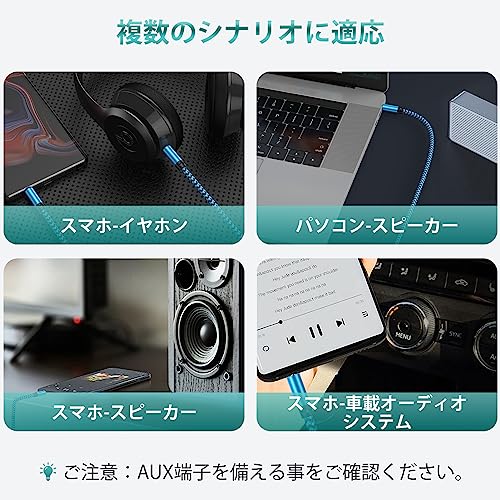 【ユニバーサルな互換性】AUXコードは、3.5mmのAUXポートを備えたあらゆるデバイス(Apple iPhone、iPod、iPad、ヘッドフォン、Hi-Fi、カーステレオ、タブレット、ラップトップ、スマートフォン、MP3 プレーヤー、スピーカー、その他のオーディオ再生デバイスなど。)と高い互換性があ