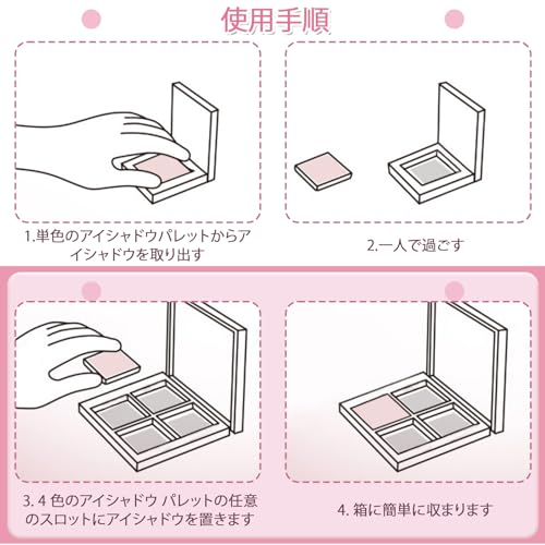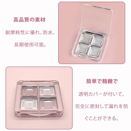 【アイシャドウケース】アイシャドウケースは4つのグリッドが設計されており、異なる色を保存することができ、簡単で精緻で、透明カバーが付いて、完全に密封して漏れを防ぐことができる。自分で化粧品を作るのが好きな人におすすめです。