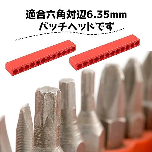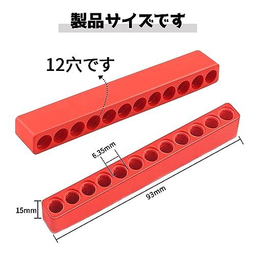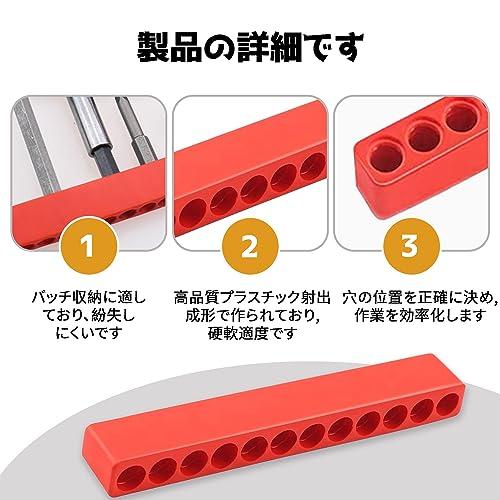 ドライバー穴プラスチック ビットケース ドライバビットホルダー(5個入り) 直径約6.5mm 赤 12穴ビット収納ストリップ 収納ツール 六角シャンクビット 整理