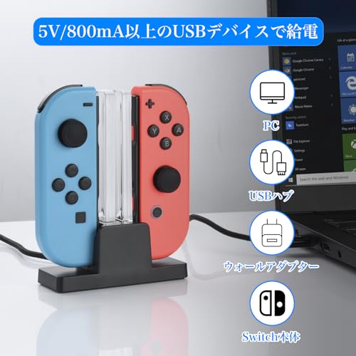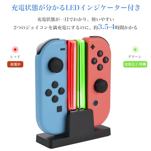 ジョイコン 充電 スタンド Joy Con 充電 2台同時充電 For Nintendo Switch 充電器 互換品 ジョイコン 充電器 充電指示LED付き Switch ジョイコン 充電 USBケーブル付き 持ち運び便利