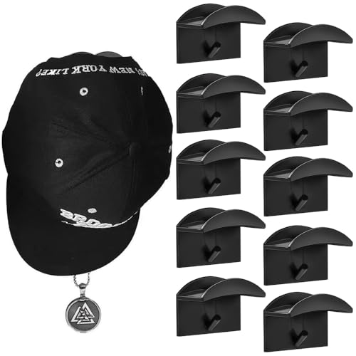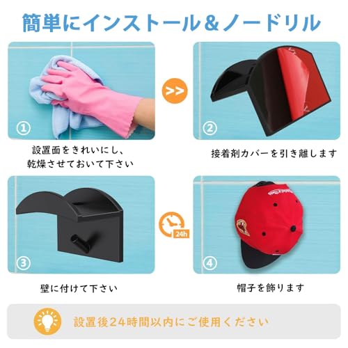 帽子掛け キャップハンガー 10個セットキャップラック 壁掛け式 ラック 小物ハンガー 帽子掛けフック 帽子収納 取り付け簡単 強力 粘着フック 穴あけ不要 壁 鍵 バッグ 野球帽 インテリア小物 (ブラック)
