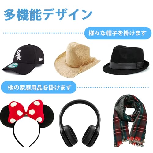 【耐久性と頑丈】:壁掛け帽子ラックは高品質のプラスチック材料で作られ、丈夫で耐久性があり、変形しにくく、長期間使用できます。お好きなようにフックをアレンジして、スタイリッシュな帽子ディスプレイを作りましょう。簡単に取り付けられる帽子用フックで、お部屋をすっきりさせましょう。