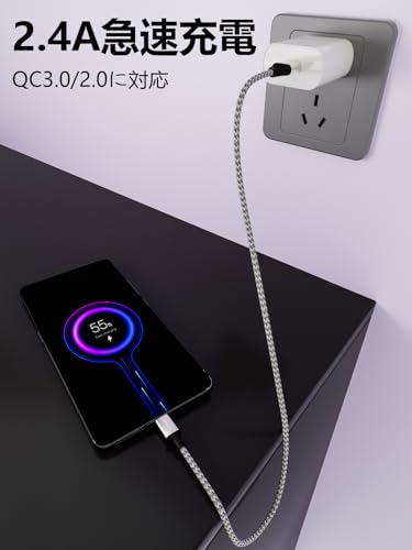 【2.4A急速充電】Aオス型とマイクロB型コネクタを備えたAndroid充電ケーブルです。QC3.0/2.0対応、最大18W(5V/2A、9V/2A、12/1.5Aなど)急速充電に対応できます。