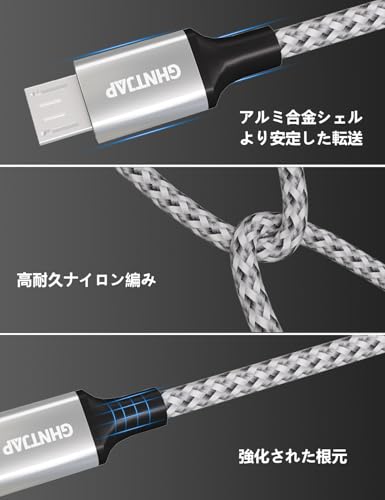 マイクロ USB ケーブル 1M [3本セット] Micro USB ケーブル QC3.0急速充電 データ転送 アンドロイド充電ケーブル Androidスマホ対応 高耐久ナイロン