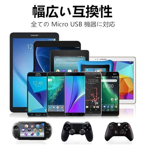 【幅広い互換性】マイクロ usb ケーブルはSharp Aquos、Xperia、Redmi Note 5/Note 6 Pro、Galaxy S7/ S6/ S5/ J5/ J7/ A8, P smart/P8/P8 Lite/P9 Lite/P10 Lite, Honor、Fujitsu Arrows、Asus ZenFone、Nokia、HTC、Nexus、LG、PS4コントローラー、カメラ、MP3 プレイヤーなどのMicro-B機器に対応します。ご購入する前ご愛機の接続ポートを確認して下さい。
