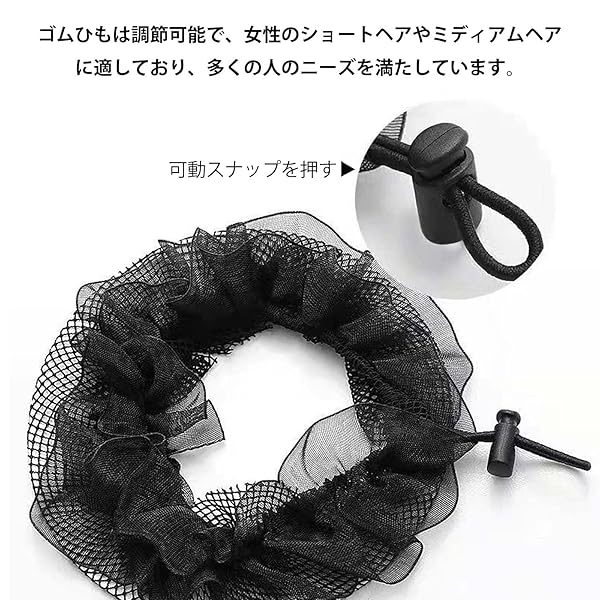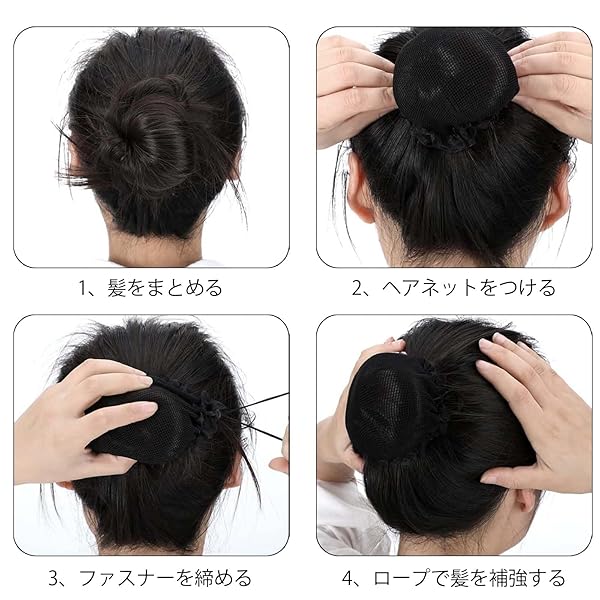 【使いやすい】ネット部分の伸縮性はとてもいい、ネット部分に髪を入れるだけでお団子ヘアの完成です。後ろに束ねたネットの中に収まりしっかり隠れて 清潔感 があります。