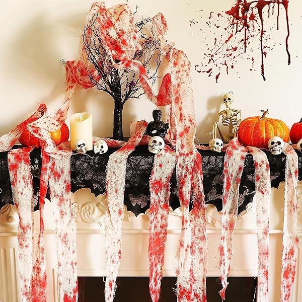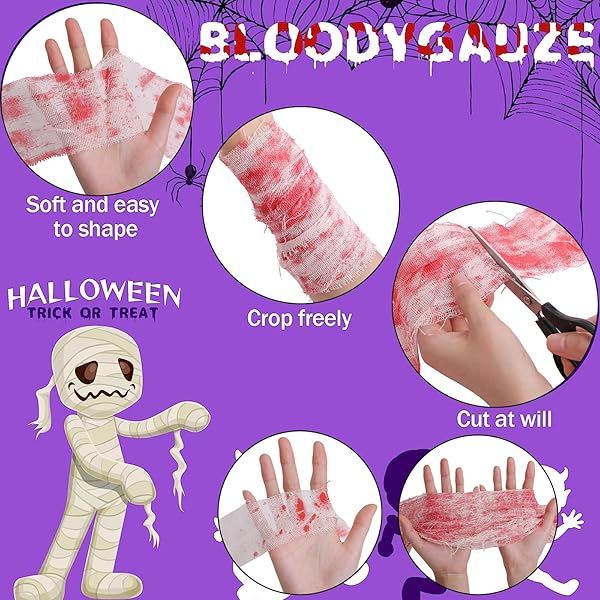 用途が広い:血まみれのガーゼをドア、玄関、木、窓、椅子などに掛けます。また、クモ、コウモリ、ドクロ、その他のハロウィンの飾り物を飾ることもできます。ふんわりとした不気味な雰囲気を醸し出すことができます。
