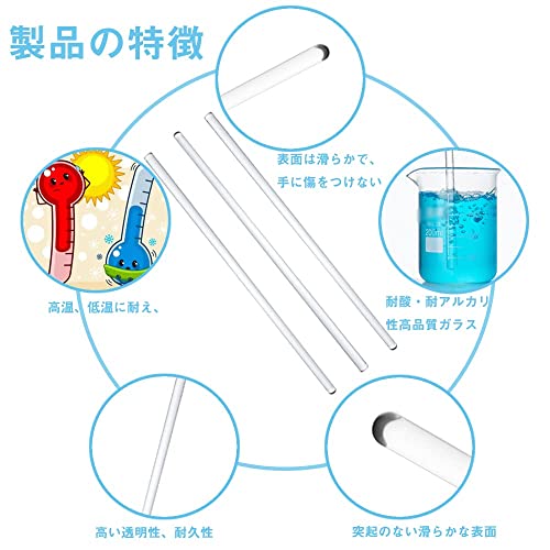 ガラス攪拌棒 15cm 両端丸型 3本入り ホウケイ酸ガラス棒 攪拌棒 ガラス棒 撹拌 研究器具 実験用品
