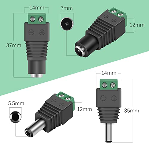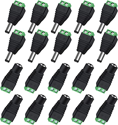 DCジャック アダプター5.5mm x 2.1mm 10メス +10オス DC 12V 電源アダプタコネクタ ネジ端子アダプタ DC電源プラグ 変換アダプ CCTVカメラ LEDストリップライト 変換プラグ 20個セット