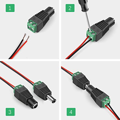DCジャック アダプター5.5mm x 2.1mm 10メス +10オス DC 12V 電源アダプタコネクタ ネジ端子アダプタ DC電源プラグ 変換アダプ CCTVカメラ LEDストリップライト 変換プラグ 20個セット 送料無料