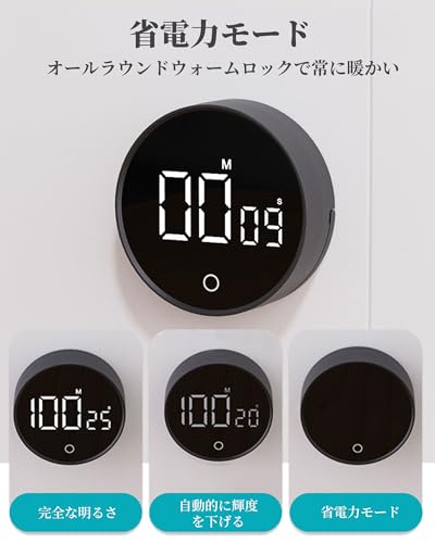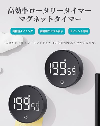 デジタルキッチンタイマー ビジュアルタイマー 大きなLEDディスプレイ 無音タイマー 磁気カウントダウンタイマー 199分 カウントアップ / ダウンタイマー 卓上置き 壁掛け 教室 / 料理 / フィットネス / ベーキング / 勉強 / 教授 子供や高齢者に簡単(ブラッ ...