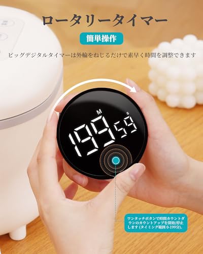 ロータリータイマー&簡単操作: ビッグデジタルタイマーは外輪をねじるだけで素早く時間を調整できます。ワンタッチボタンで時間カウントダウンのカウントアップを開始/停止します (タイミング範囲 0-199分)。キッチン、教室、フィットネス、会議など用に設計されています。お年寄りでも子供でも、この回転タイマーは簡単にコントロールして使用できます。
