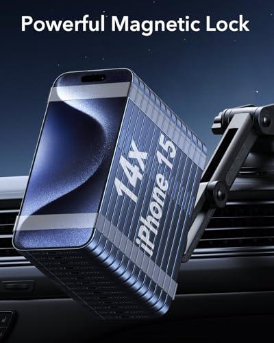 【ワンタッチ吸着】360°のリング状磁石によりiPhone 12シリーズ以降のMagSafeに対応し、ワンタッチで便利に吸着。注意こちらの商品は車載スマホホルダーで、充電機能が付いておりません。