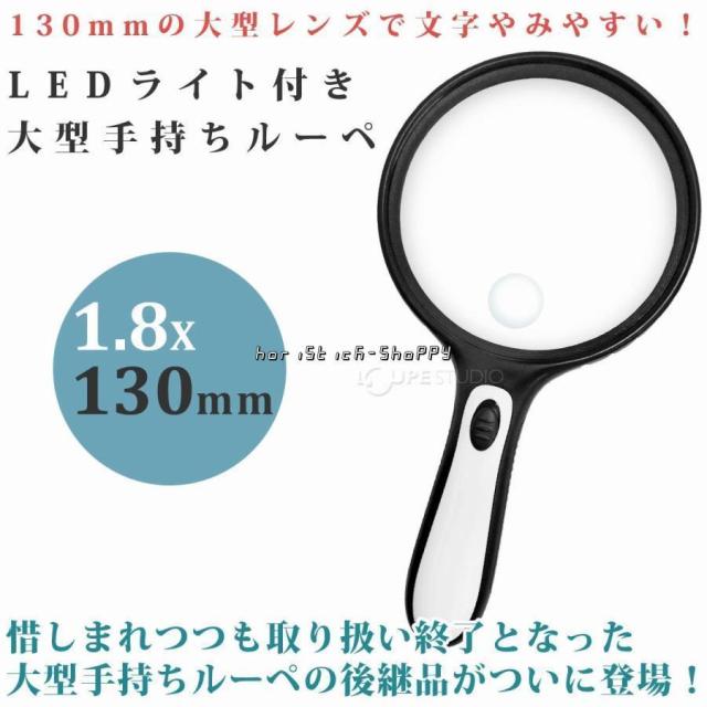 ルーペ LED ライト付き 大型 手持ちルーペ W-130LH 1.8倍 130mm 虫眼鏡 拡大鏡 読書 観察