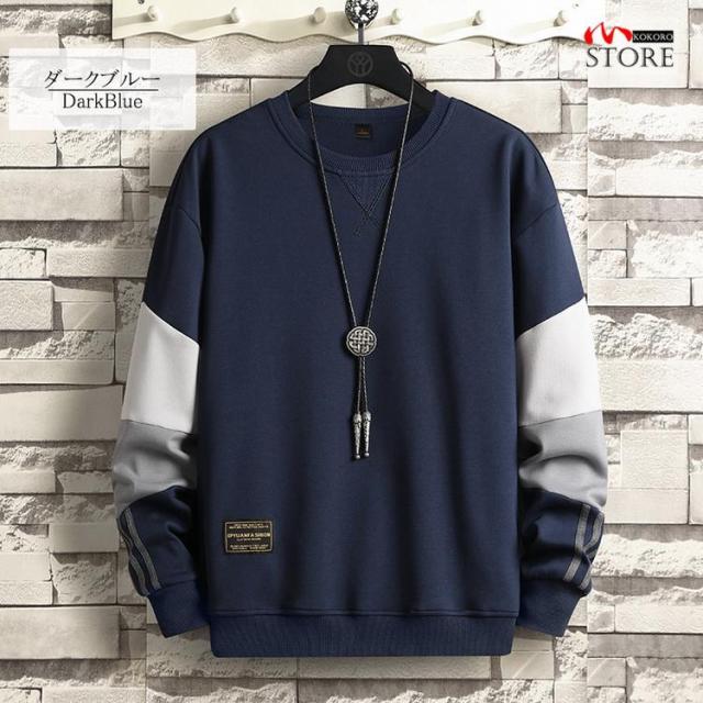 メンズ トレーナー 春服 春 春物 トップス クルーネック 切り替え袖 ファッション 2025 春 新作