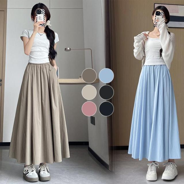 スカート レディース ロングスカート フレアスカート マキシスカート 夏 ゆったり 接触冷感 ウエストゴム 体型カバー