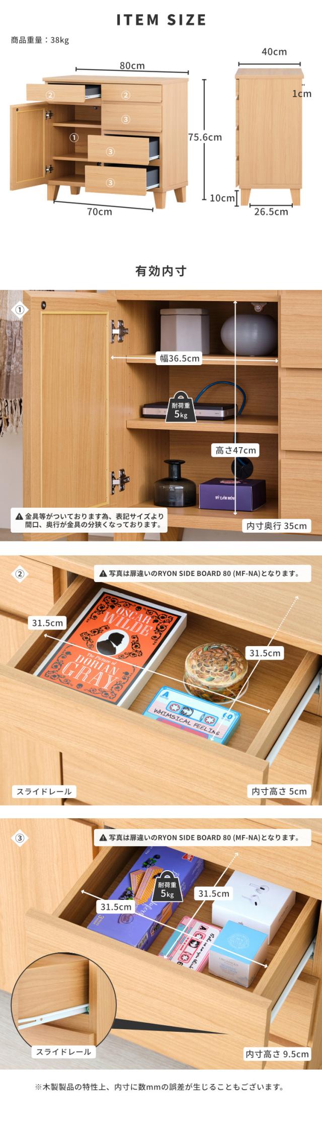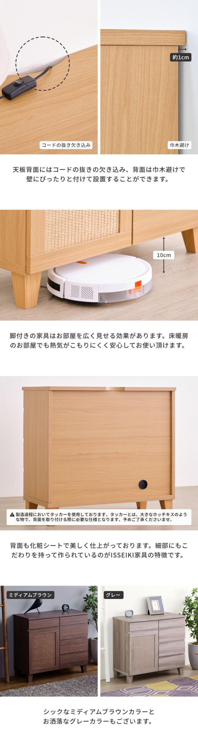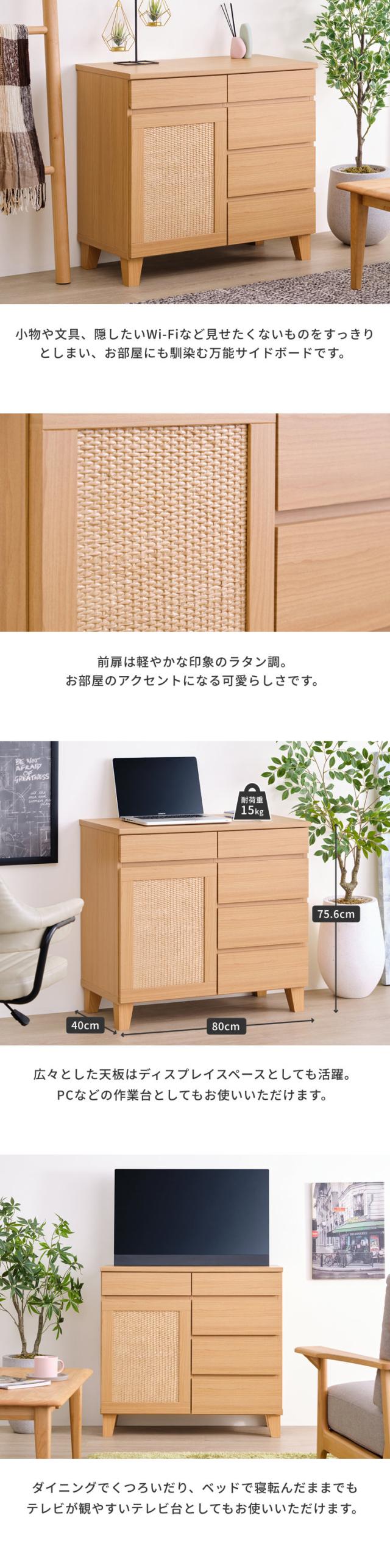 サイドボード キャビネット 北欧 ラタン調 リビングボード 収納 チェスト 北欧 ローボード 北欧 幅80 リビング収納 壁面収納 木製 棚 リビング シンプル 引き出し オシャレ 品質保証 ISSEIKI RYON-4 SIDE BOARD 80 (RATTAN) (MF-NA)