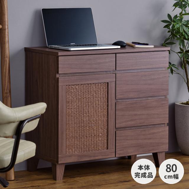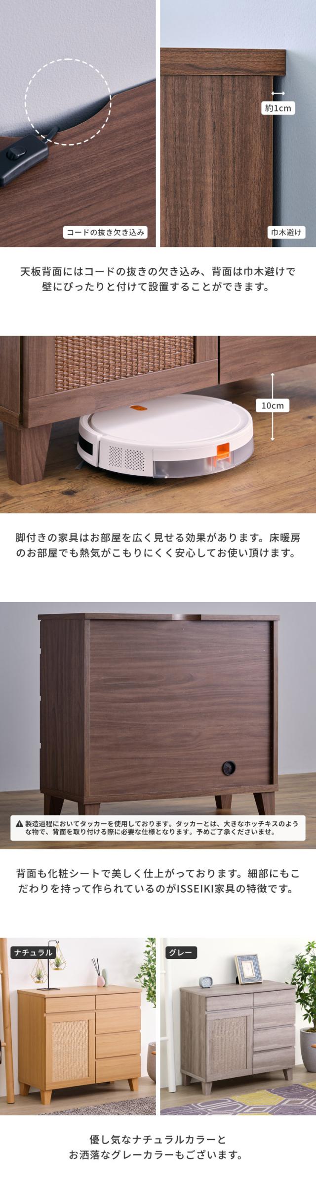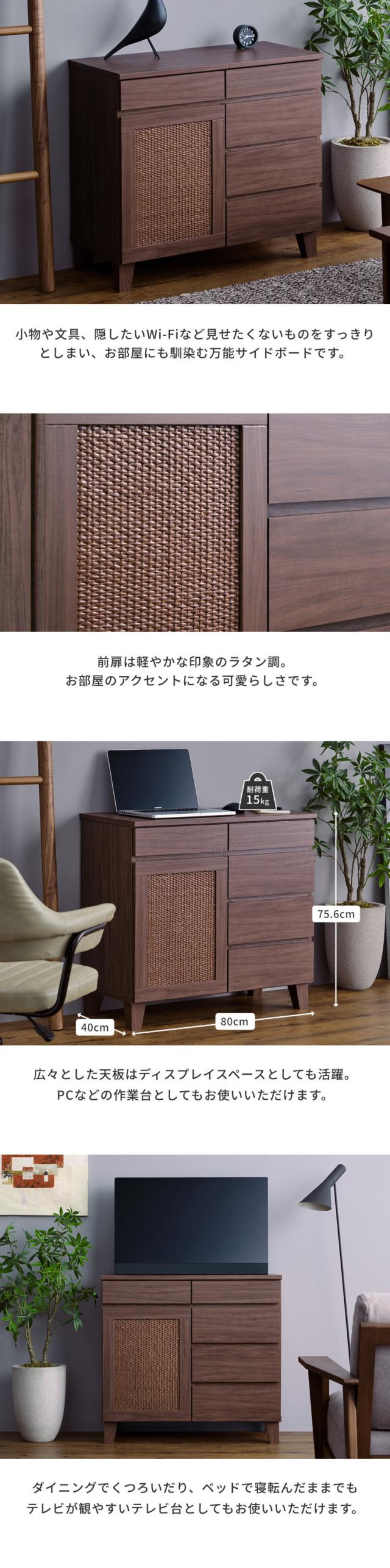 サイドボード キャビネット 北欧 ラタン調 リビングボード 収納 チェスト 北欧 ローボード 北欧 幅80 リビング収納 壁面収納 木製 棚 リビング シンプル 引き出し オシャレ 品質保証 ISSEIKI RYON-4 SIDE BOARD 80 (RATTAN) (MF-MBR)