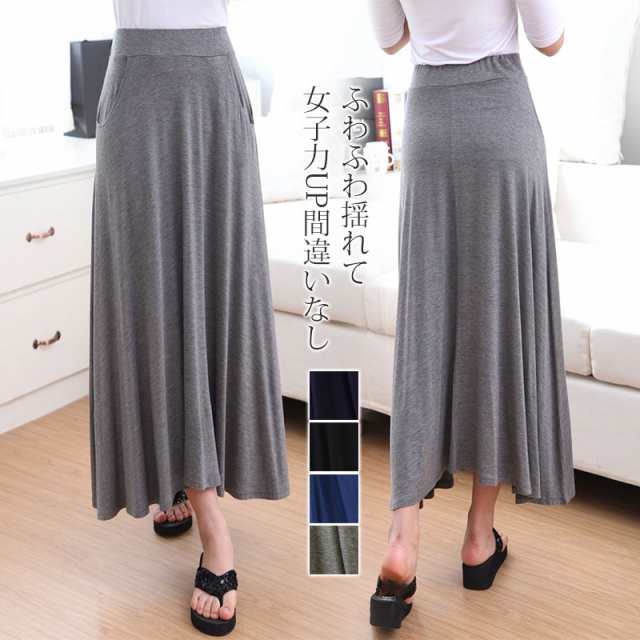 スカート マキシスカート とろみスカート ウエストゴム レディース 体型カバー 大きいサイズ フレアスカート Aライン ロング丈 ボトムス ロングスカート マキシ丈 マキシ コーデ 着こなし シルエット スポーツ 上品 エレガント 優雅 ゆったり セール 着痩せ 美脚スカート ファッション 無地 新作 シンプル 着痩せ ママ 大人