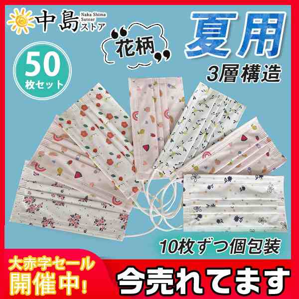 マスク 不織布 夏 おしゃれ 大人用 レディース 使い捨て 花柄 可愛い カラー お洒落 3層構造 ファッション 柄物 夏マスク