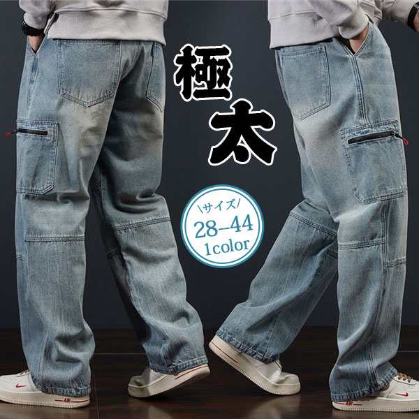 極太 デニム ジーンズ パンツ メンズ ルーズフィット B系 ヒップホップ ストリート系 ワイドパンツ ポケット付き バギーパンツ