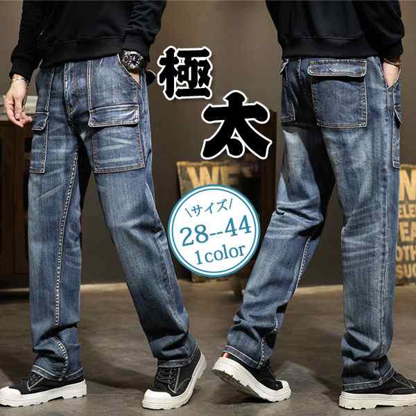 ジーパン デニム カーゴパンツ メンズ 大きいサイズ ゆったり デニムパンツ ワイドパンツ ロングズボン 極太 無地 ストリート系 ロック パンク サルエルパンツ ジーンズ リブパンツ ロング丈 ボトムス チノパン バギーパンツ カジュアル ウォッシュ加工 ユーズド感 テーパードワイドパンツ ヒップホップ ジョガーパンツ ダンス ストレッチ 太め 刺繍 バギーパンツ