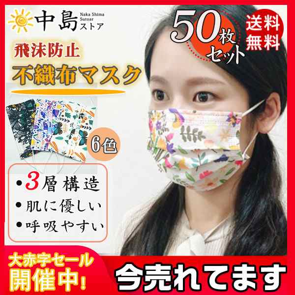 50枚 マスク 柄 不織布 蝶柄 おしゃれ 大人用 使い捨て 花柄 可愛い カラー お洒落 3層構造 立体 ファッション