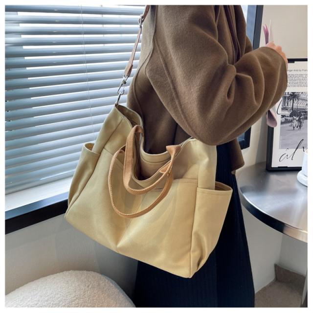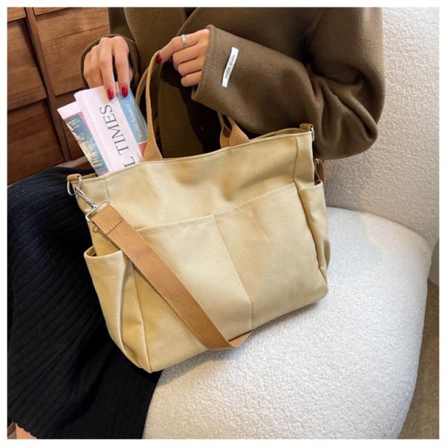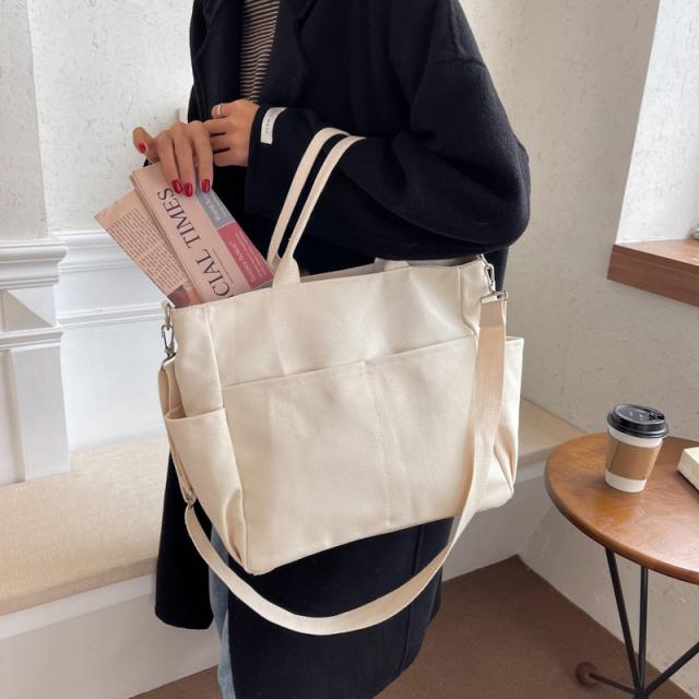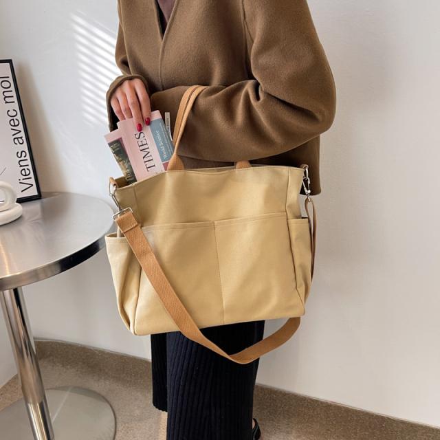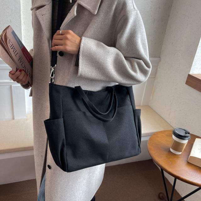 ショルダーバッグ 大きめ レディース 軽量 斜めがけ トートバッグ A4 ファスナー 帆布 2WAY 大容量 スマホポシェット 通