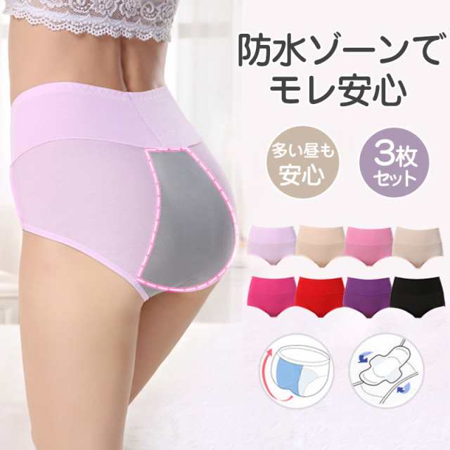 サニタリーショーツ 生理用ショーツ 3枚セット レディース 下着 インナーパンツ ハイウエスト夜用 昼用 生理用パンツ 漏れ防止