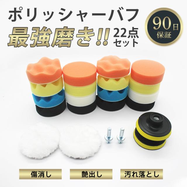ポリッシャー バフ 電動 車 セット キズ消し スポンジ ウール 研磨 パッド ワックス 80mm 仕上げ 細目 マジックテープ