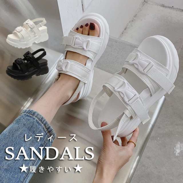 サンダル レディース スポーツサンダル ビーチサンダル サマー 夏 厚底 スニーカーサンダル マジックテープ 疲れない カジュアル