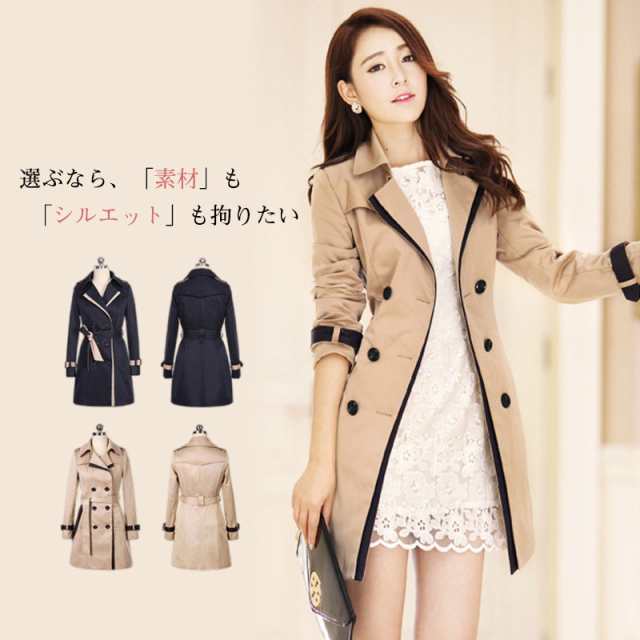 トレンチコート レディース ライトコート 春 秋冬 スプリングコート アウター フード付き バックタック入り 体型カバー おしゃれ